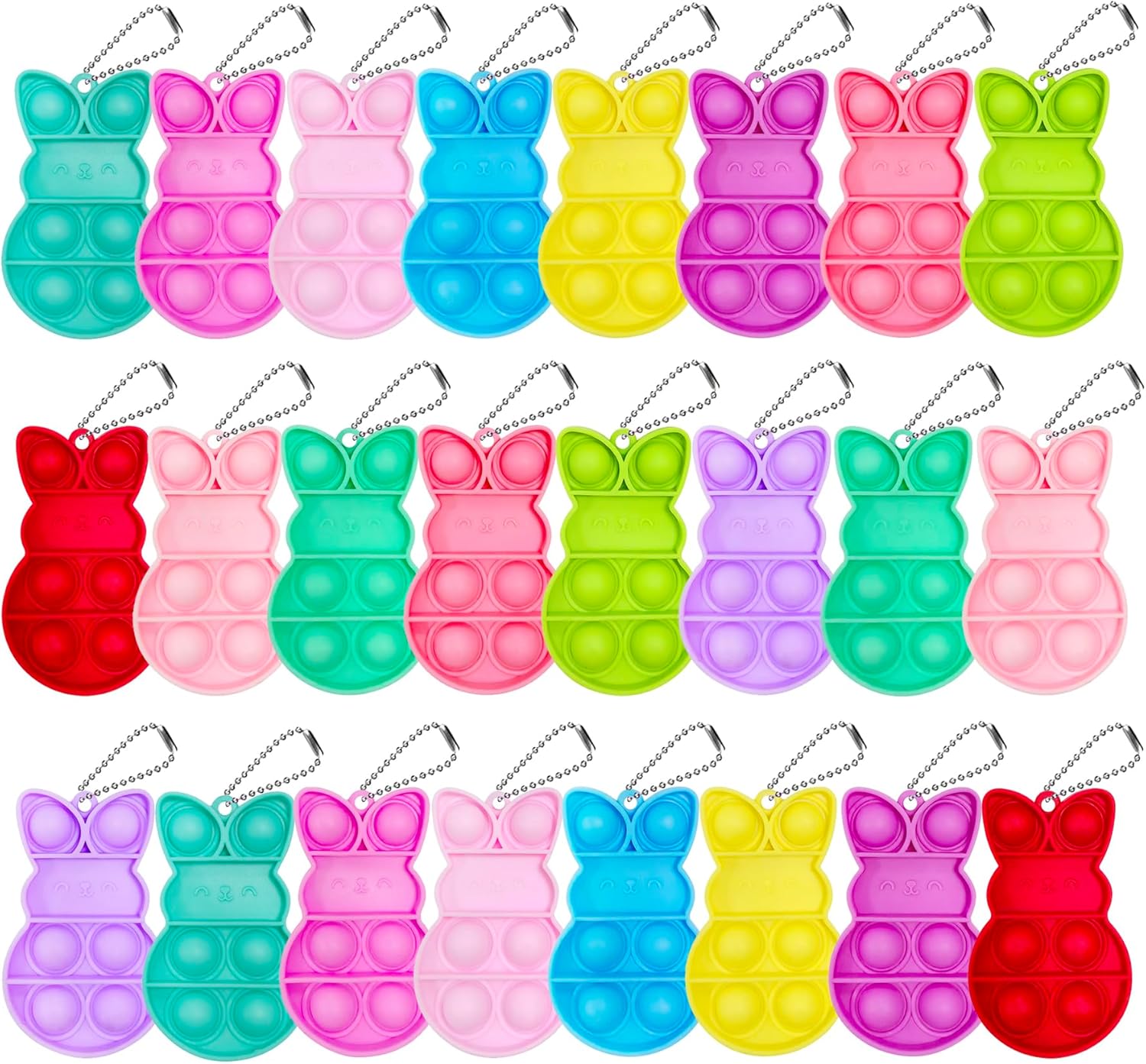 Easter Eggs with Bunny Pop Fidget Keychain Toys – 24-Pack