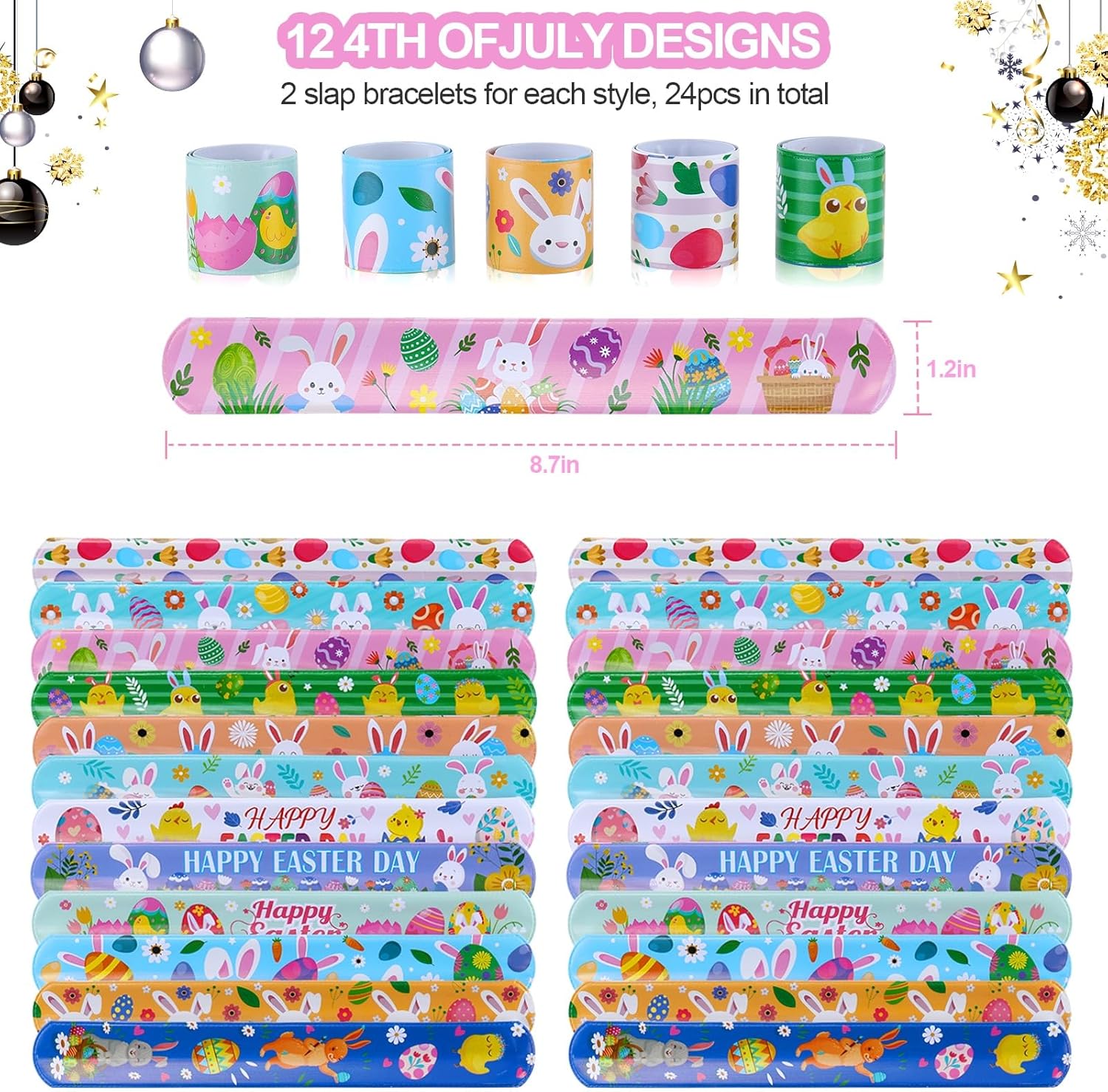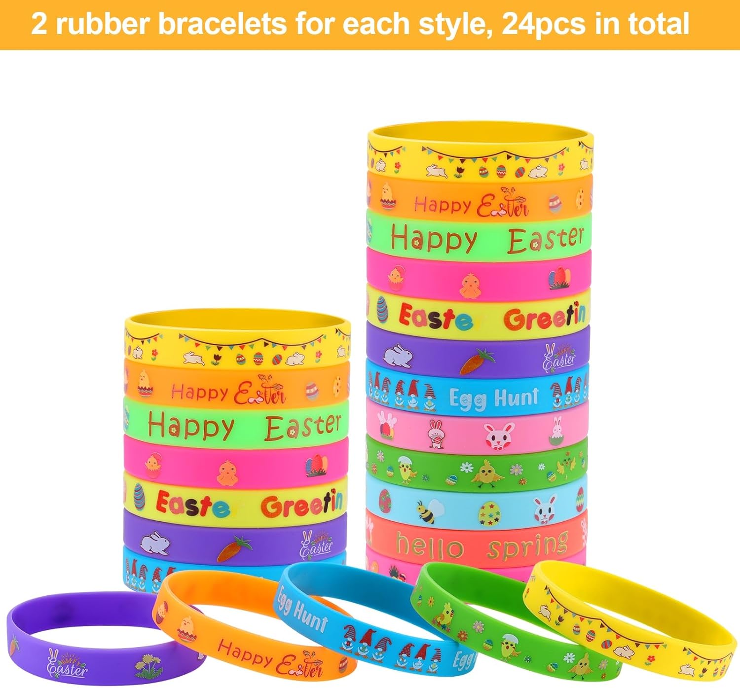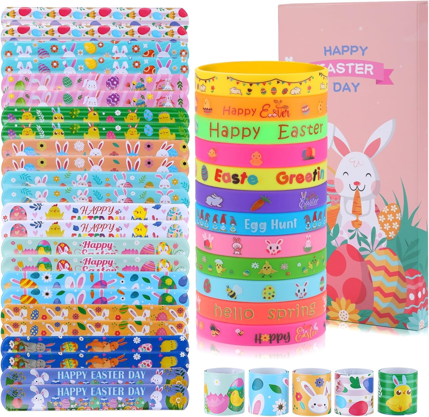 Easter Slap Bracelets – 48-Pack Rubber Wristbands for Kids