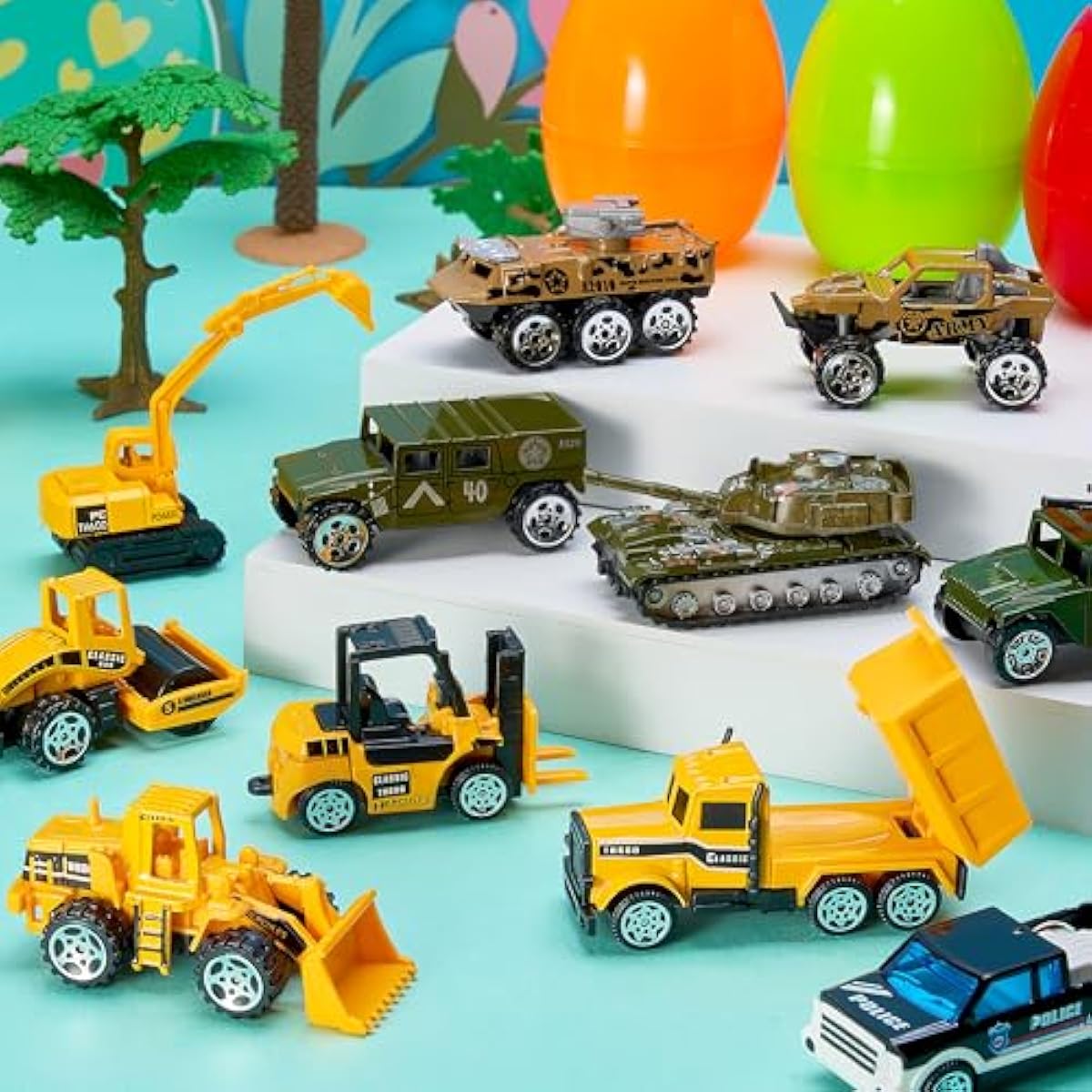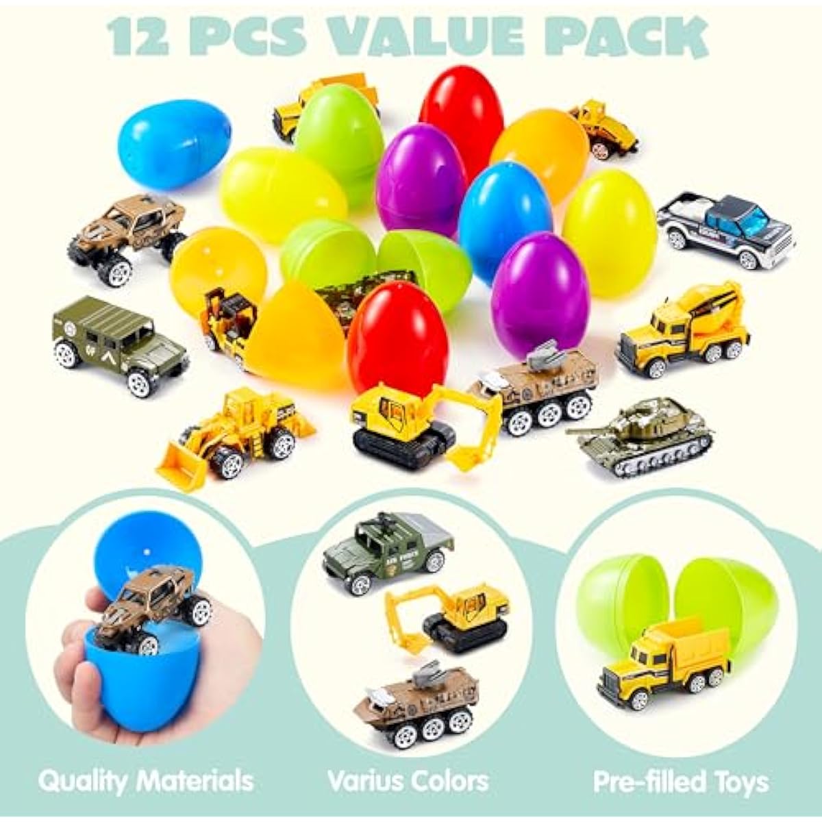 - Ready-to-Hunt & Play: 12 eggs, each bursting with a cool city car or truck! No stuffing, just pure joy.